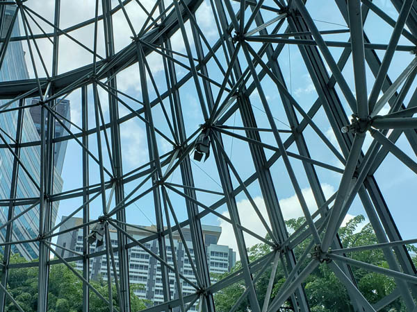 新加坡烏節(jié)中央城商場(chǎng)網(wǎng)架項(xiàng)目(2017年完工),網(wǎng)架做頂部玻璃采光與墻面幕墻支撐結(jié)構(gòu),另外一個(gè)網(wǎng)架錐體采光,高度25米,為藍(lán)海公司個(gè)新加坡工程項(xiàng)目。